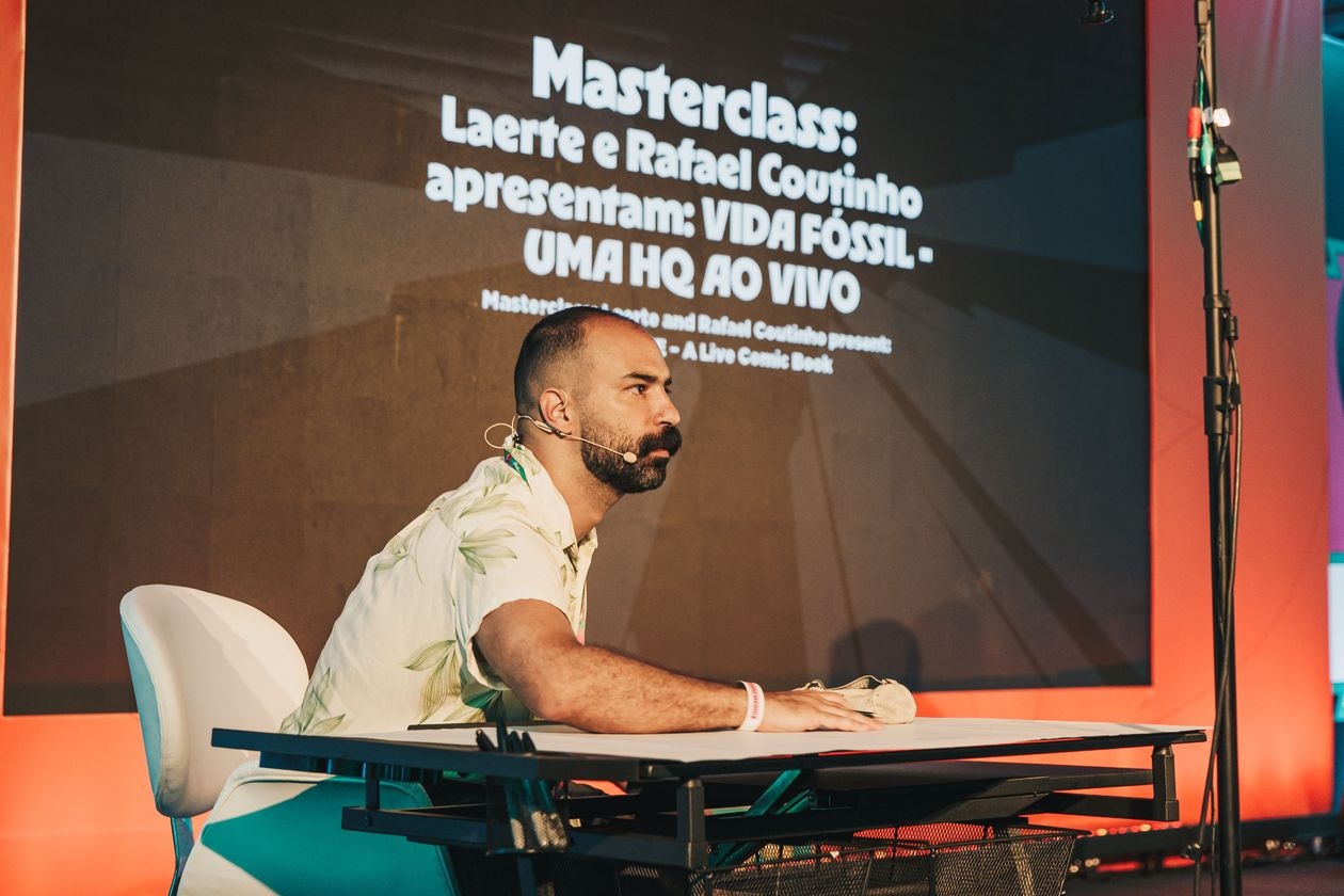 Diante de uma sala lotada, os dois explicaram como o projeto ganhou forma — dos thumbnails aos esboços finais. Entre humor, reflexões sobre narrativa e comentários sobre tiras, histórias longas e a importância de uma “ideia unificadora”, o público acompanhou cada traço sendo construído em tempo real. “Eu gosto de ler quadrinho por conta da linguagem que me agrada”, comentou Laerte ao falar sobre o que ainda a move dentro do universo dos comics.